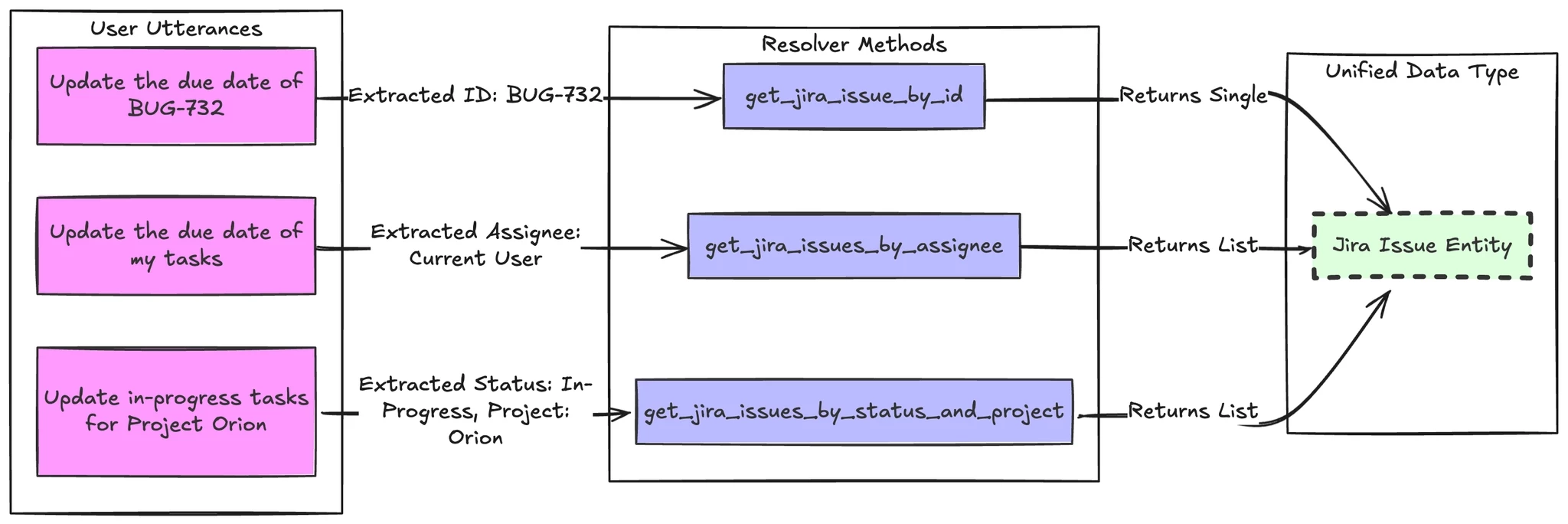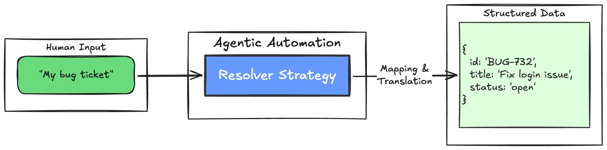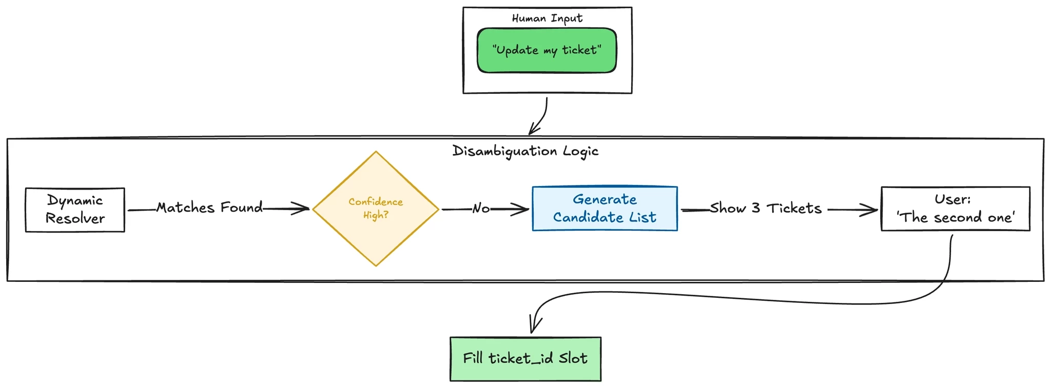Slots collect inputs. But "my bug ticket" isn't an ID. It's context. Something has to convert that into a structured value your action can use. That's what resolver strategies do.