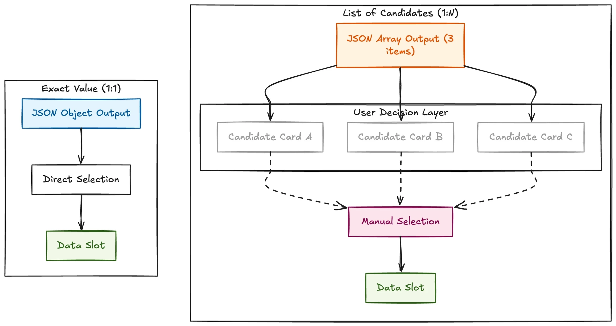 This is why I ship every custom data type with a resolver now. Under the hood, the resolver uses symbolic working memory to track both the candidate list and the selected value. The assistant can't accidentally swap IDs or fabricate new ones mid-conversation. The value comes from your system of record. Every time.