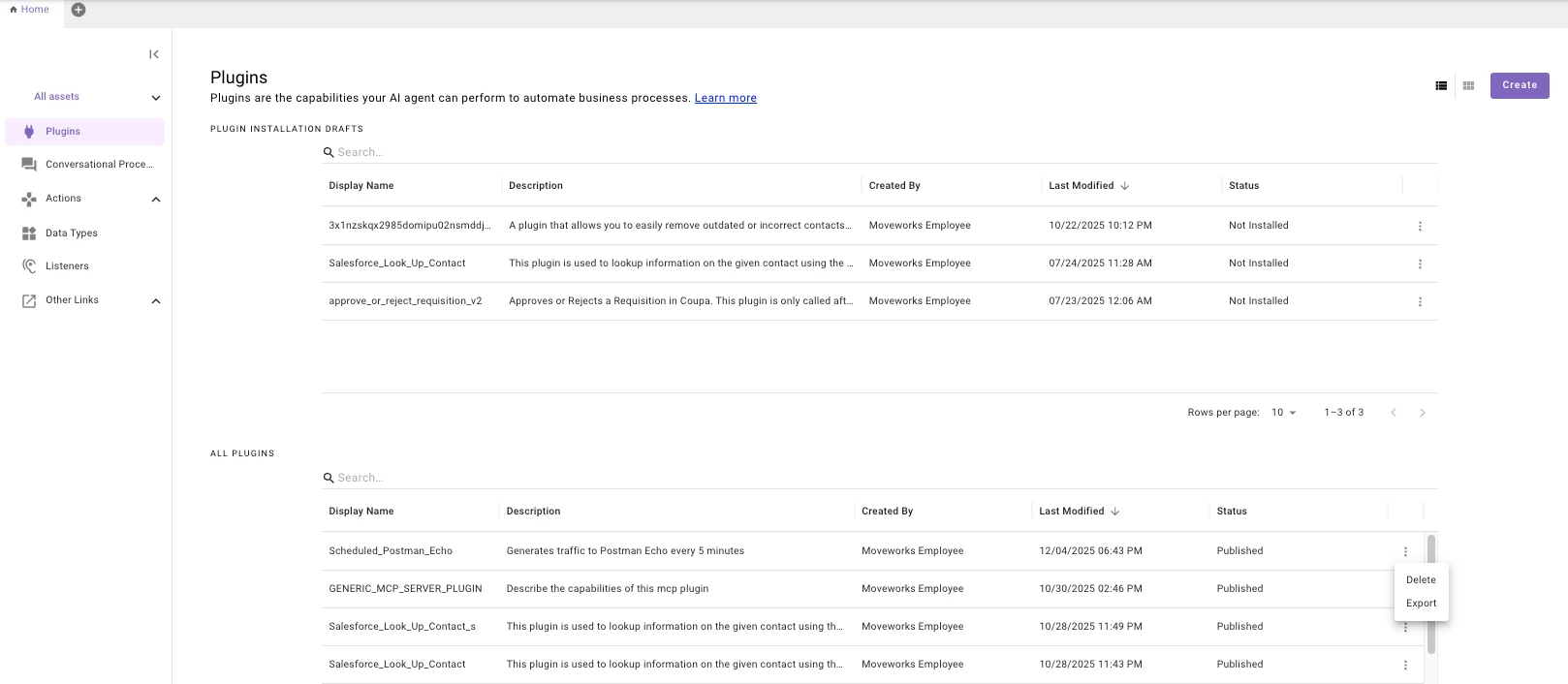 I found Moveworks documentation showing that we can export plugins between environments, but I don’t see anything about exporting HTTP actions, conversational processes, script actions, compound actions, etc.