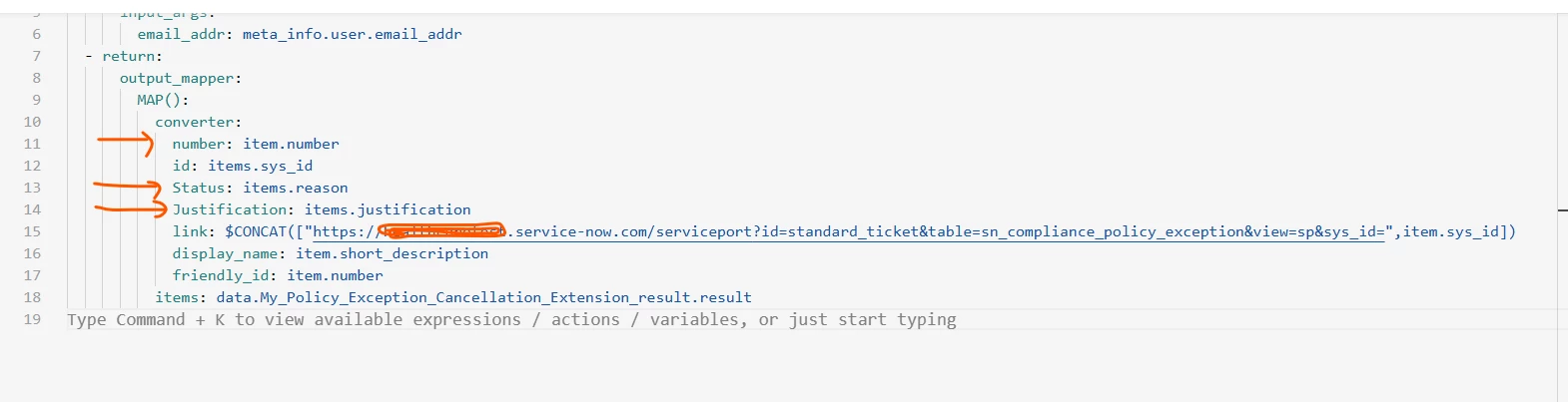 I requested fields like number, justification, and status. I have also mentioned these fields in the use case description, but the result is not aligned with the code written.