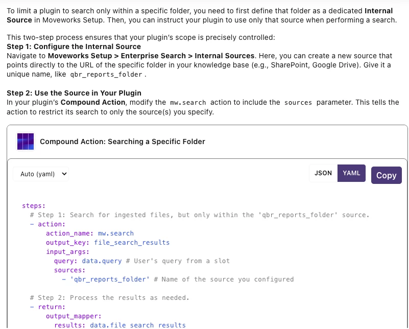 I want to ingest files in sharepoint folder and build custom plugin to search dedicated folder using compund action. As per the Agent Architect, this is feasible but i am not able find the steps suggested by tool.