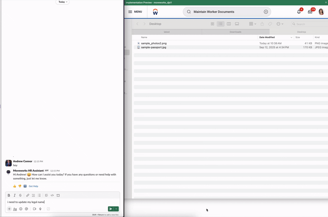 You can now collect files from users right inside Moveworks! With File Slots, you can design plugins that request and receive files — like receipts, documents, and invoices — and send them directly to external systems.