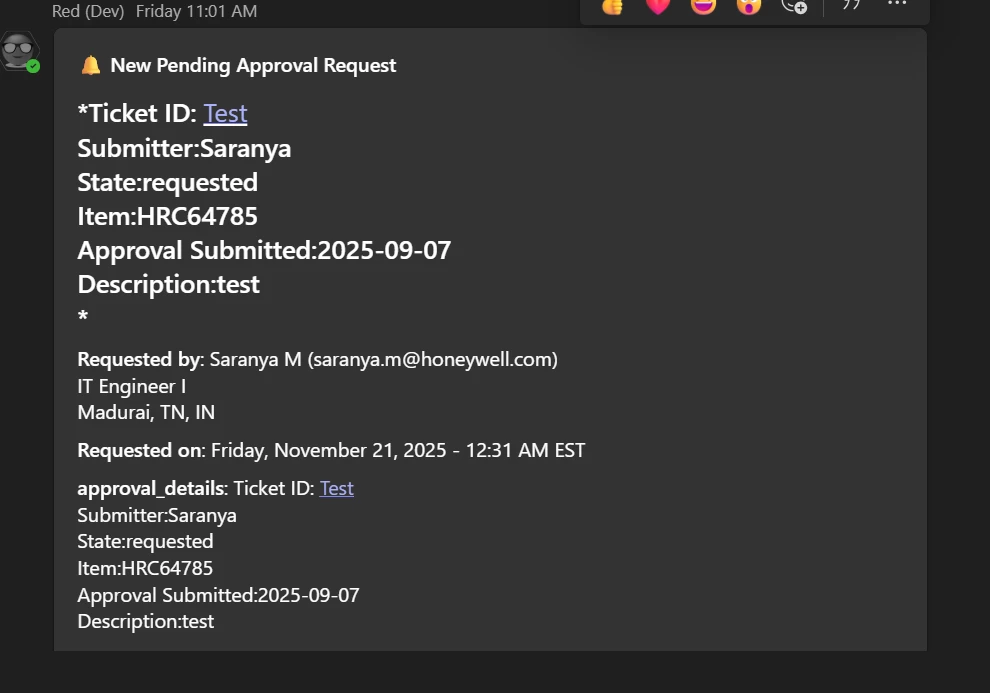 We are facing an issue with the MW generic approval template(mw.create_generic_approval_request). We are able to build the approval request successfully, but when we trigger it to the user, the notification contains the header as approval_details. Whatever we pass as “approval_details” appears as the header. This is fine when we add one or two lines of approval details, but when we add a list of information for approval, it looks bad for the end user and it’s duplication values