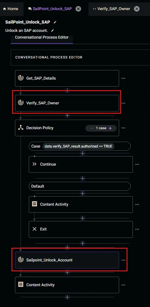 - Check policy → action activity (but only one!)