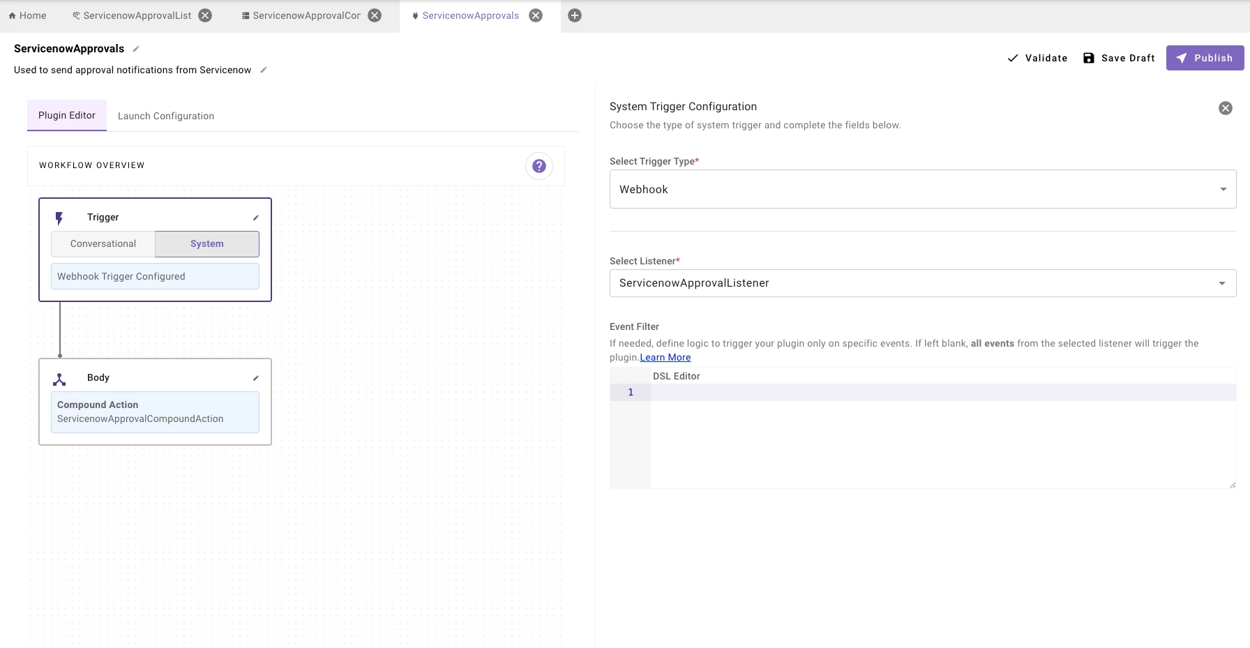Plugin using System Trigger via Webhook Listener - Compound Action