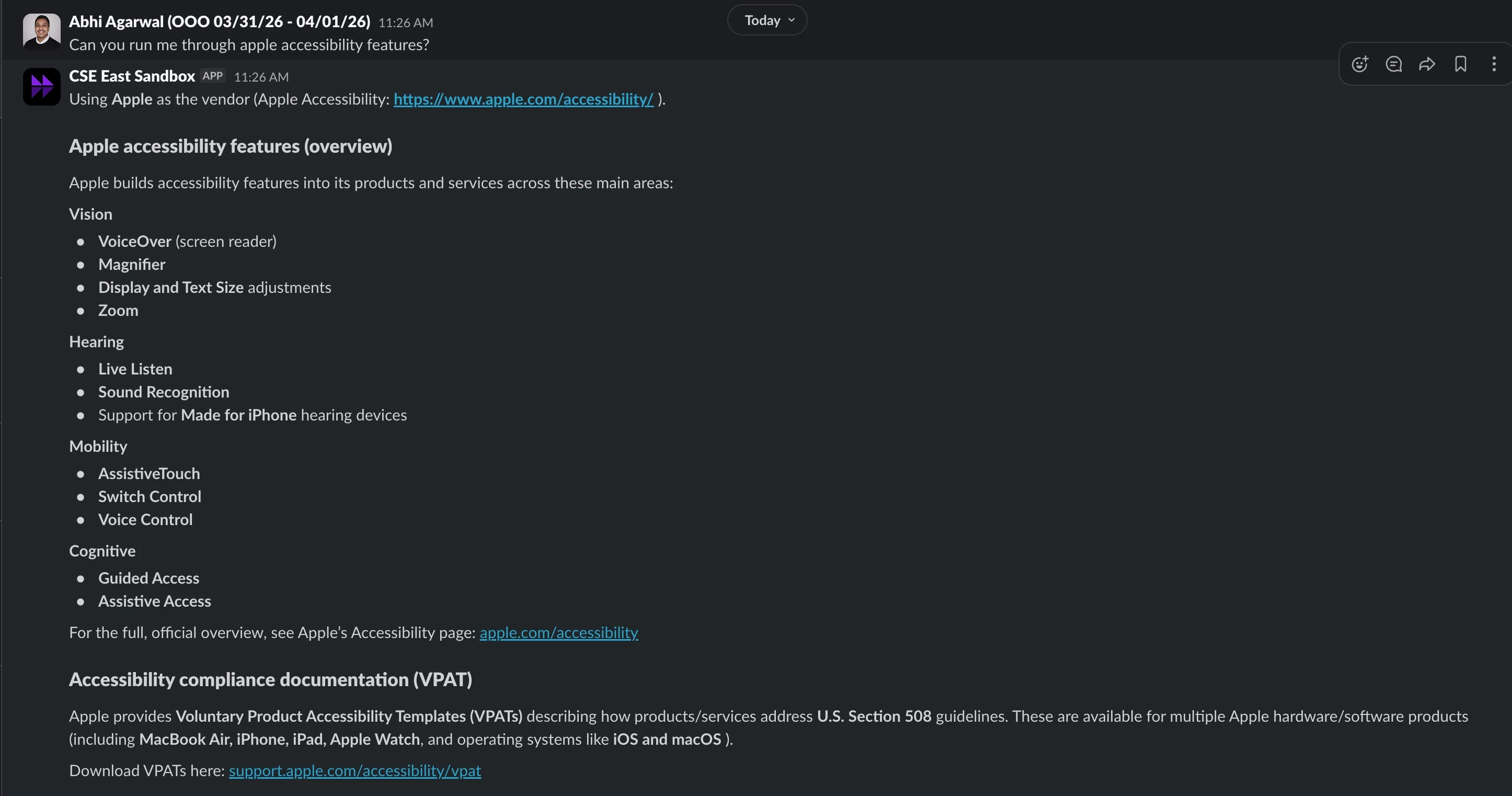 Accessibility documentation is a useful example because it often spans multiple pages within a vendor’s public documentation set.