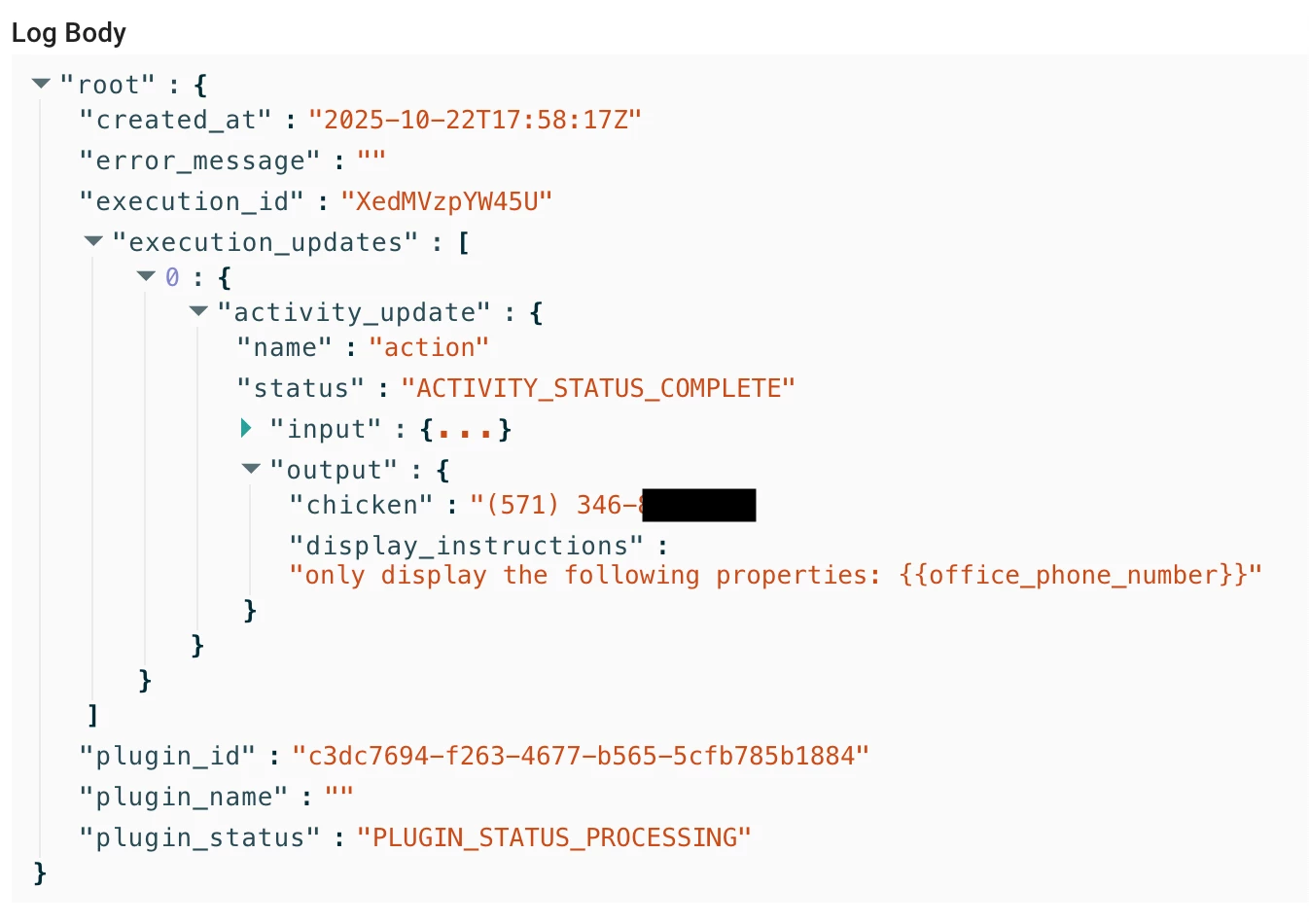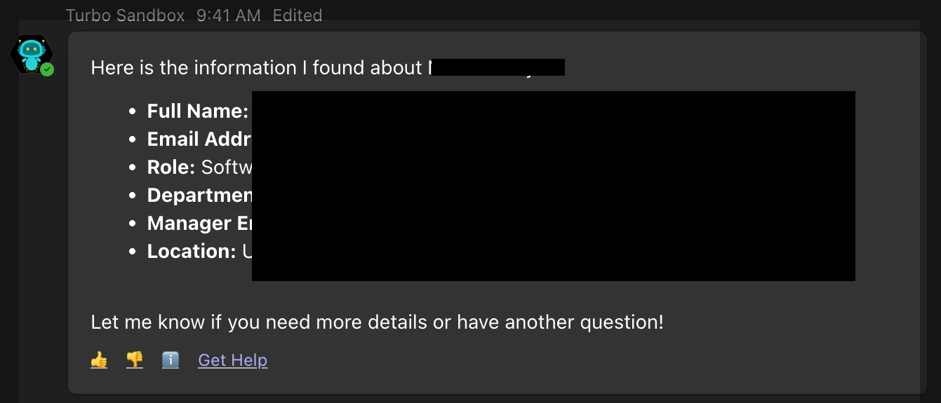 i have an agent studio plugin that uses the User object as a slot to get a user context. what i’m finding is the bot is responding with a default set of properties even though i’m not specifying which values from the user object to display. i’m using the built-in mw.generate_text_action and defining a slot in the conversation process as a User object type, which is grabbing the user context correctly. but the bot response message is showing the same default properties (full name, email, role, manager, dept, location) and i don’t want to display those, at least not like that. i tried using display_instructions property in the output mapping, but that doesn’t work. the default properties are still displayed.