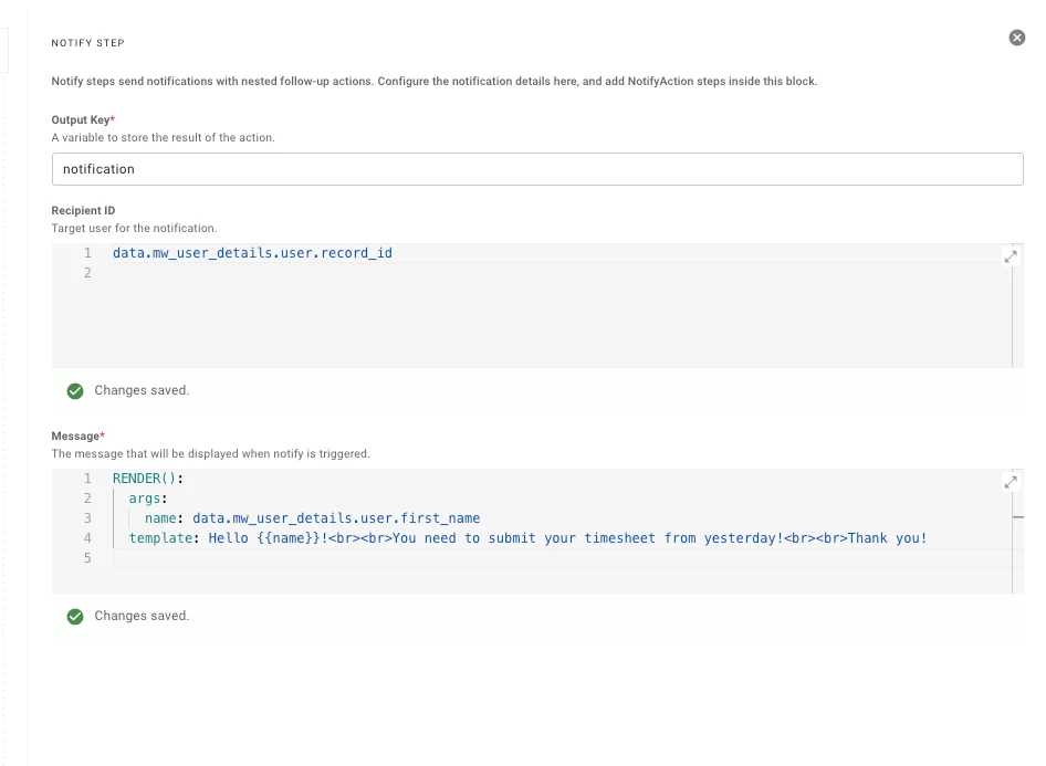 I am building a workflow using the notify action with a webhook listener. I want to send a message to the end user that is preceded by a greeting. When using the classic events, there was an option to use a greeting (Hi, {{name}}). Is this something that we can turn on with the new webhook listeners? If not, what would be the best way to implement this?