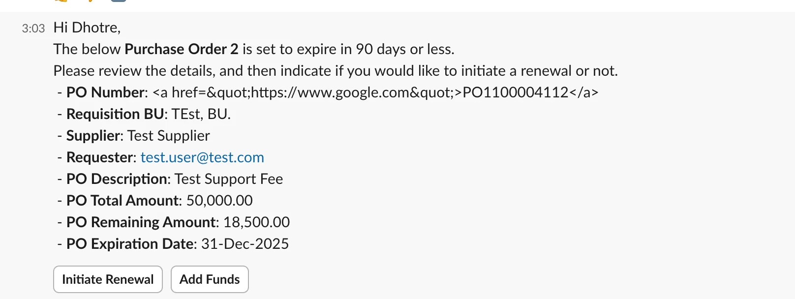 Plugin sends the message to slack with 2 button.