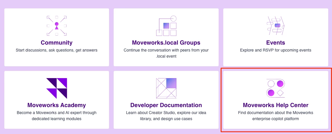 You can access the new help center at help.moveworks.com or from the homepage of Moveworks Community!