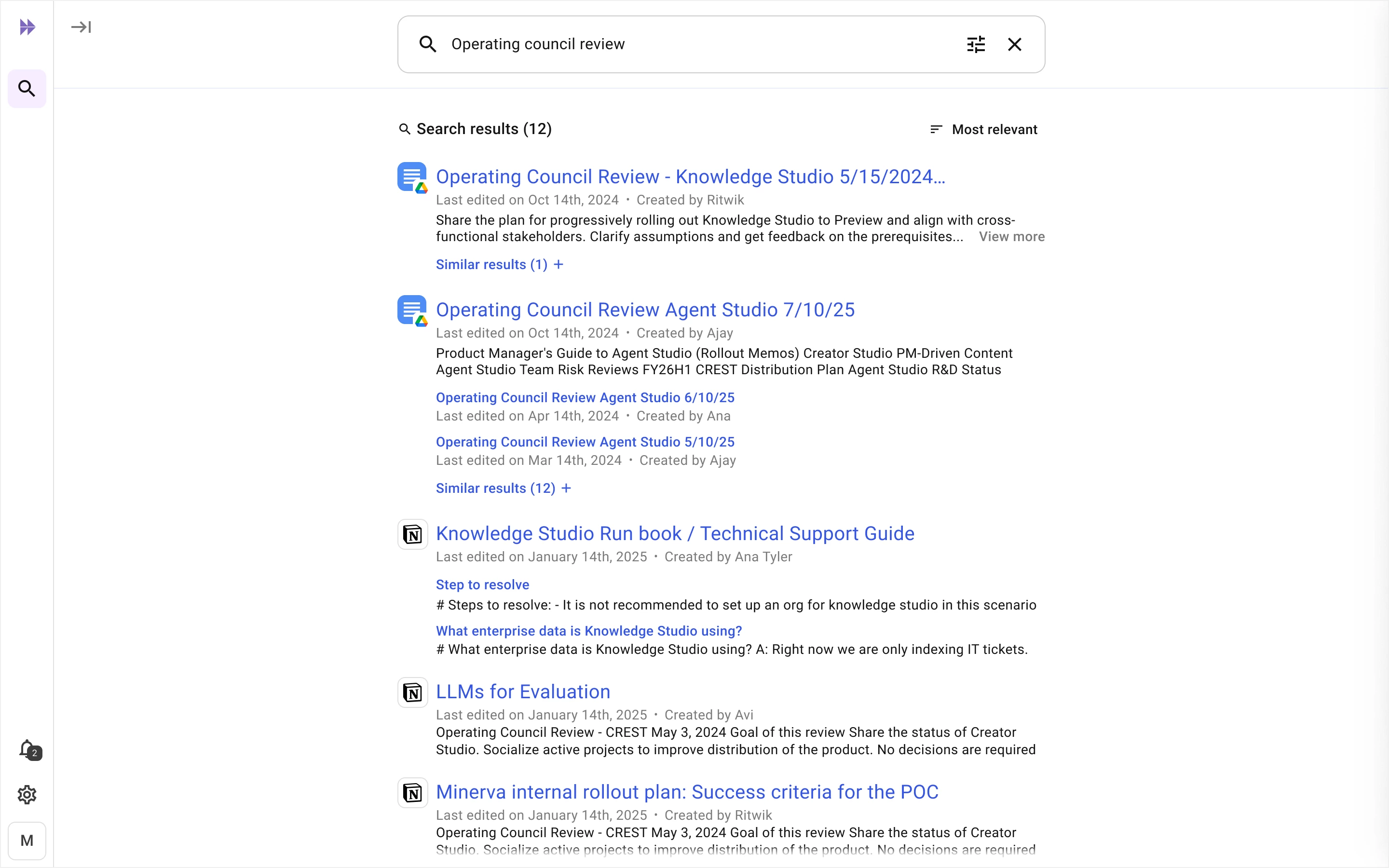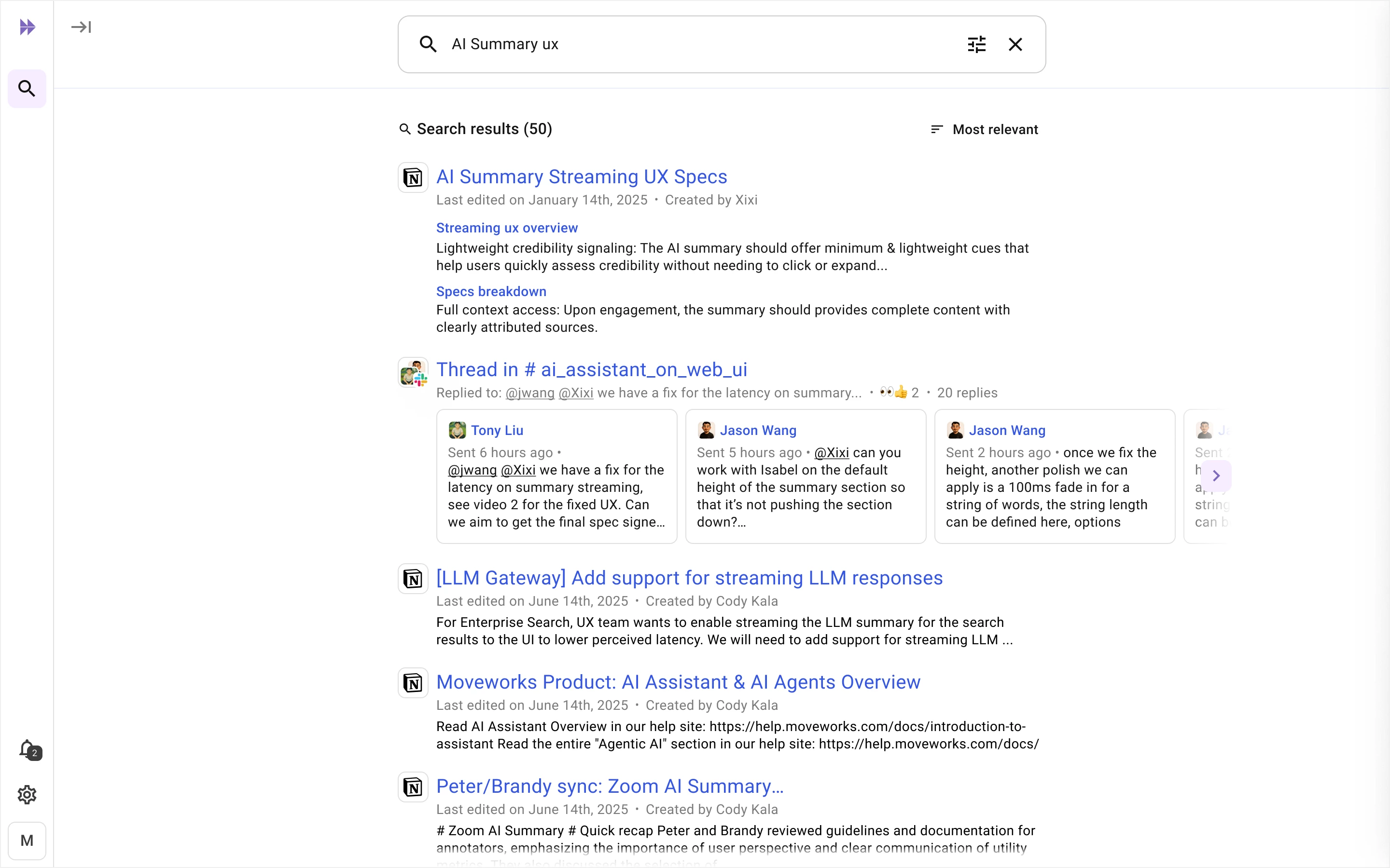 We’ve made it even easier to find the information you need. Search results will now group related documents, snippets and chat messages together, so you can see all the most relevant information in one clean, organized view.