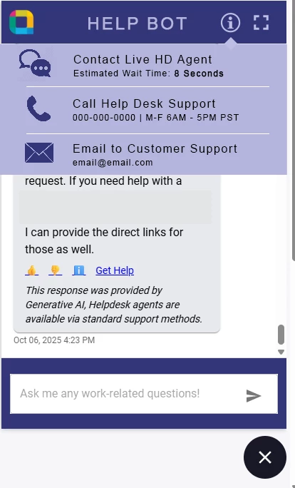Ideally a way to specify additional support options and hours up front. Possible even could be utilized to show FEM outage messages like “X Application is down” to minimize a flood of calls/chats.