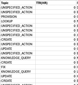 - BUG: In the “Apps and Services Detail” dashboard, you can download one CSV file for all tickets, but there the information in the “Topic” column and TTR when you download the file is wrong. If this is fixed, this may solve the issue, but it would be ideal to be able to include the ability to download a file of all tickets within the given timeframe on both the “Employee Issues” and and “Apps and Services” Detail dashboards that includes a column with the topics.