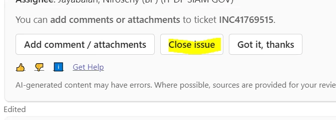 Get User resolution comment before closing ticket.