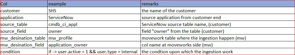 Moworks platform can have an additional table which can be referred what to ingest