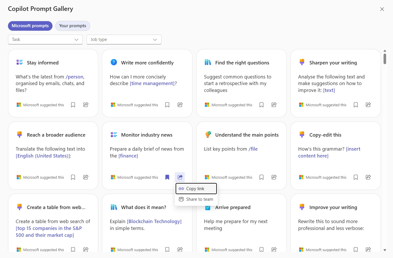As of July, Microsoft will be building the Prompt gallery into the Copilot chat for even easier access.