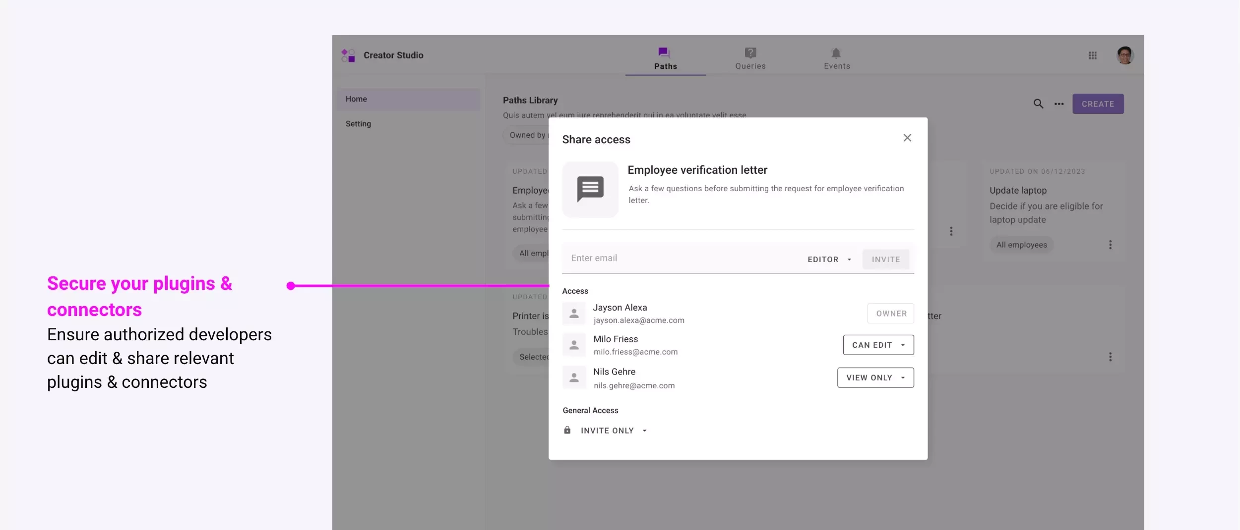 - Control which plugins and connectors your developers, analysts, and administrators can view, edit, and launch.