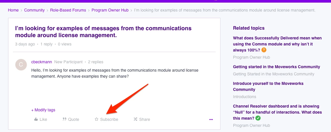 If you enjoy topics in areas such as the Program Owner Forum or Product Forums, be sure to subscribe to that area to get email updates about new topics posted to that area of the community.Â