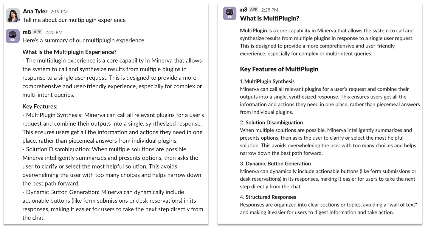 We’re updating how the AI Assistant formats its messages to make them easier to read. Instead of dense blocks of plain text, responses will soon include structure like section headers, bullet points, code lines, code blocks, and bolded key details. These improvements make it easier for employees to scan information quickly, understand what matters, and act with confidence.