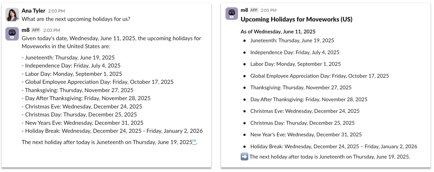 We’re rolling out a set of experience updates to our Moveworks AI Assistant which are designed to make every employee interaction feel clearer, faster, and easier to act on. These updates are grounded in feedback we’ve heard from you and your employees. They aim to remove friction, build trust, and meet the high usability bar your organizations expect from a best-in-class AI Assistant.