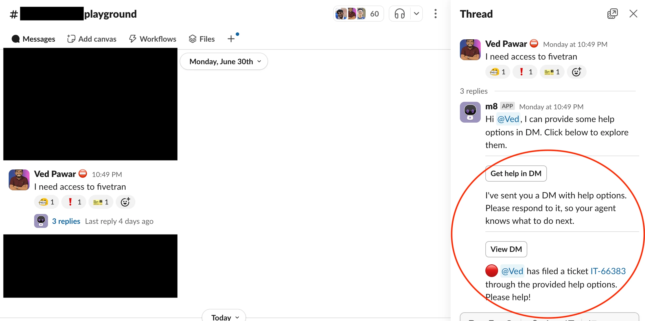 - Original thread keeps "no resolution" emoji and stays unresolved if user files ticket/contacts agent