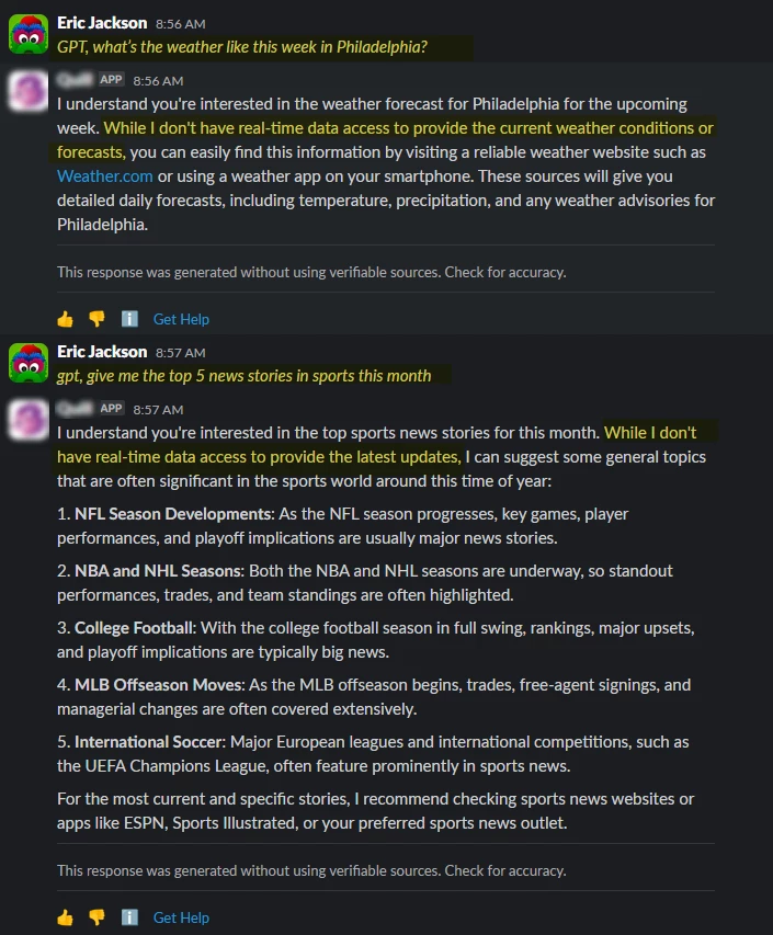 To run a web search, simply add “gpt” at the start of your question and ask a question about the weather, current events, or the latest developments in an area of interest.