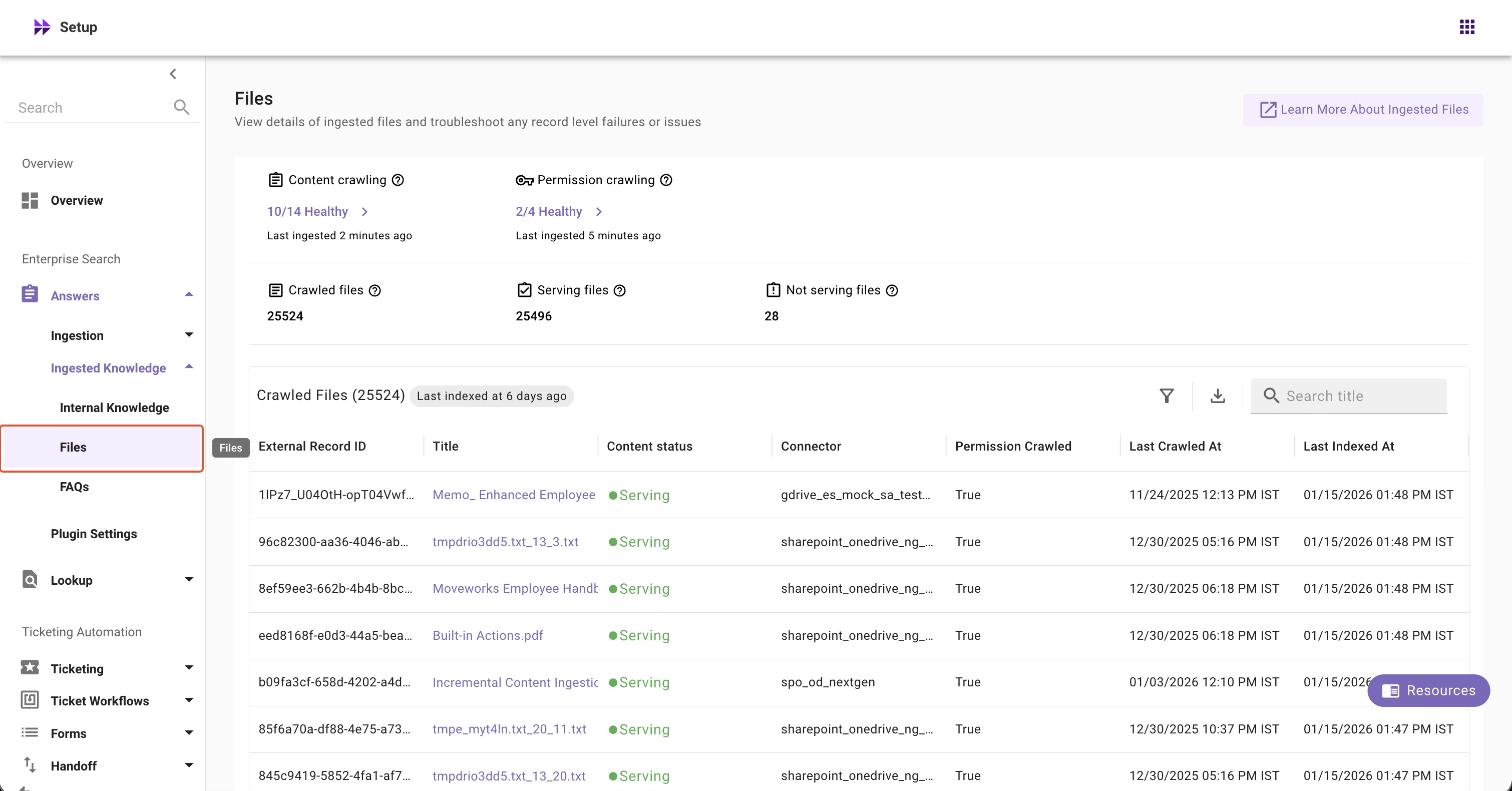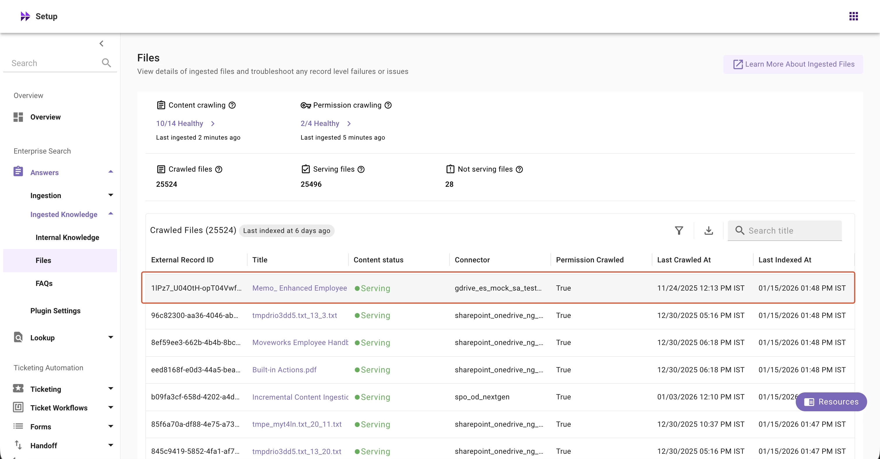 2. In Enterprise Search left nav section, expand Enterprise Search → Answers → Ingested Knowledge
