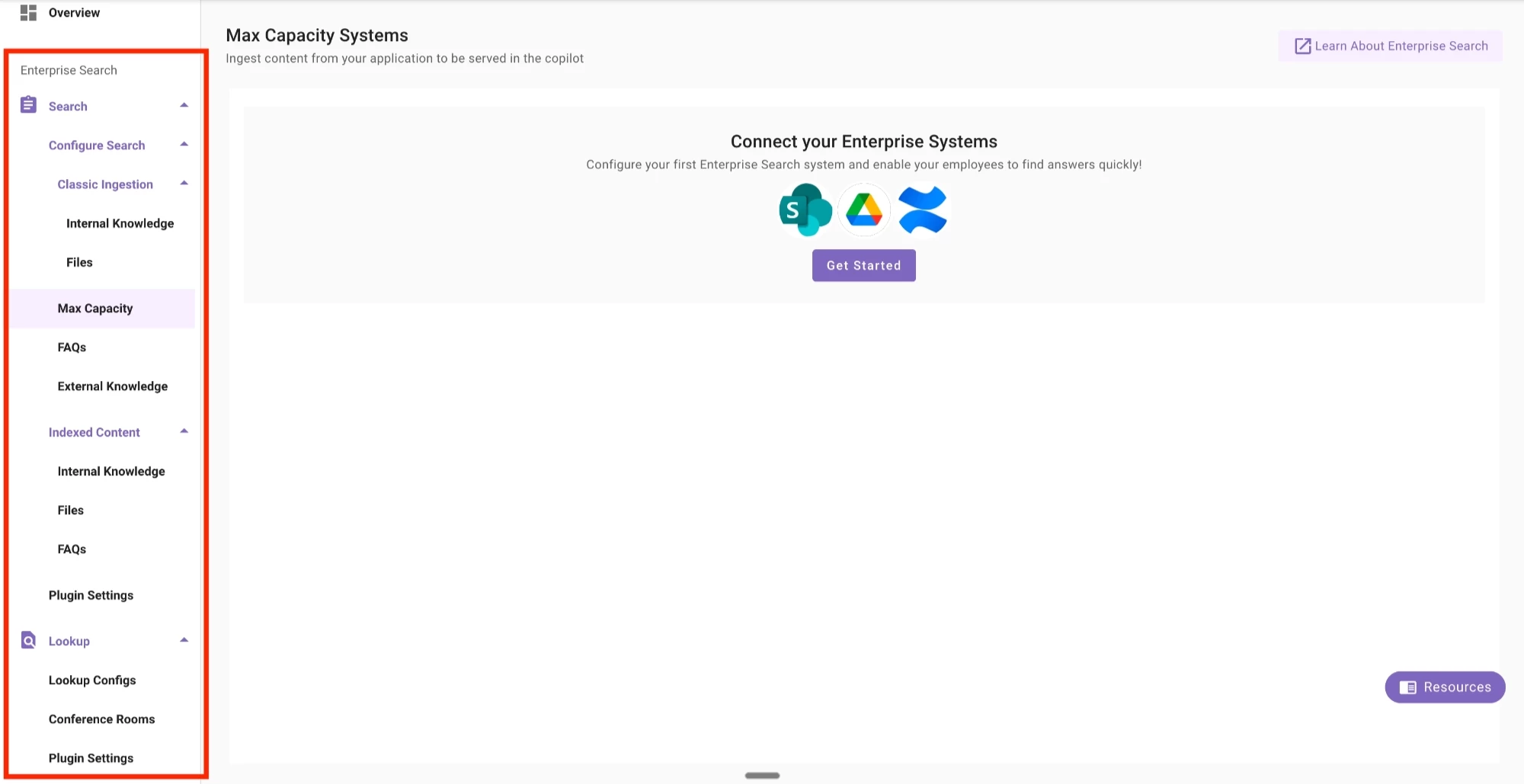 • Enterprise Search (page) → Max Capacity