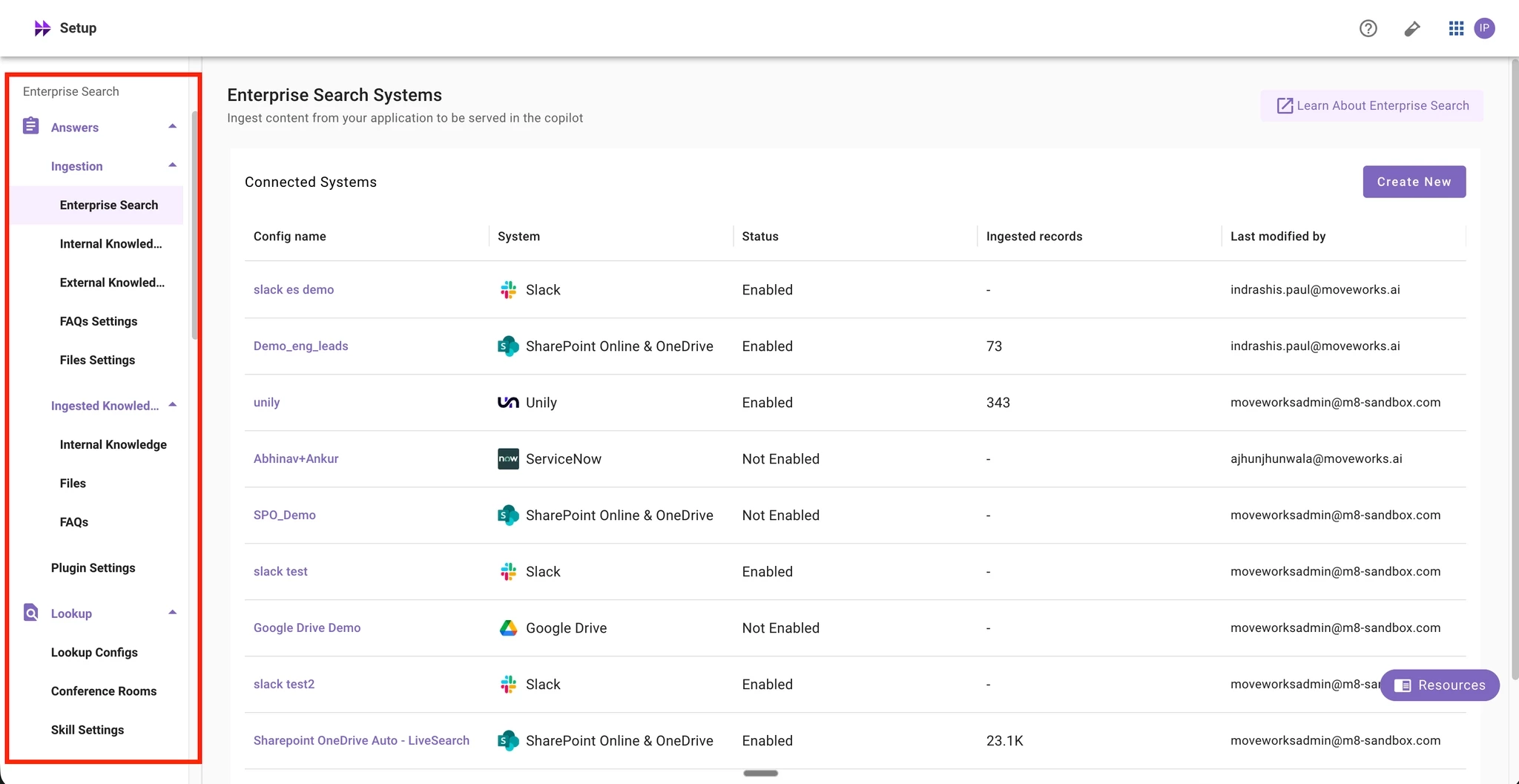 Simplified Navigation & Connector Names in Moveworks Setup — Enterprise Search Section